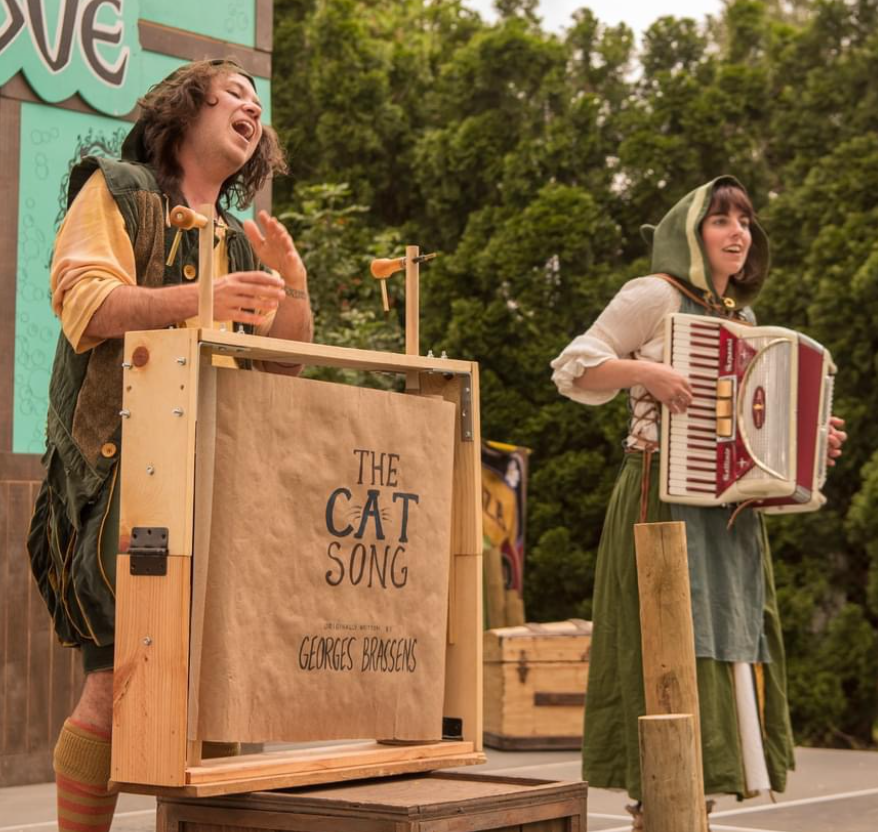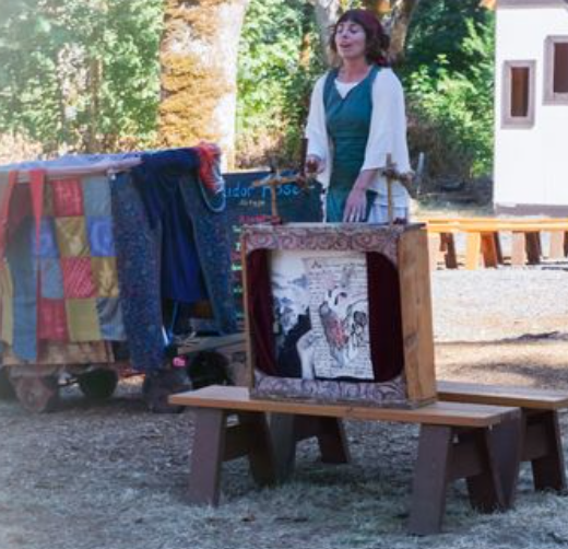 Crankie-boxes are illustrated scrolls, set into boxes with cranks. When you turn the crank, short sections of the pictures pass by. Usually there is a song or story that goes along with them.